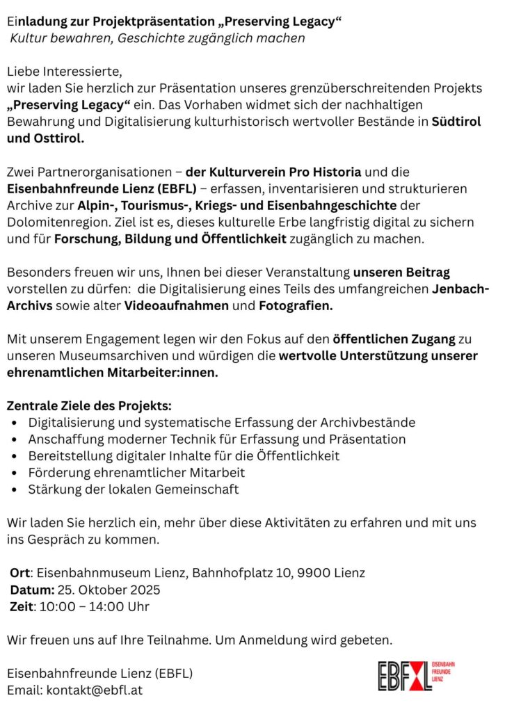 Zudem streben wir Kooperationen mit Universitäten und anderen Archiven an, um Wissen auszutauschen, Ressourcen zu bündeln und Synergien zu schaffen. Wichtig ist uns dabei auch der vertiefte Austausch und das Kooperationsangebot in Richtung der Osttiroler Kulturvereine, um die neuen Ressourcen